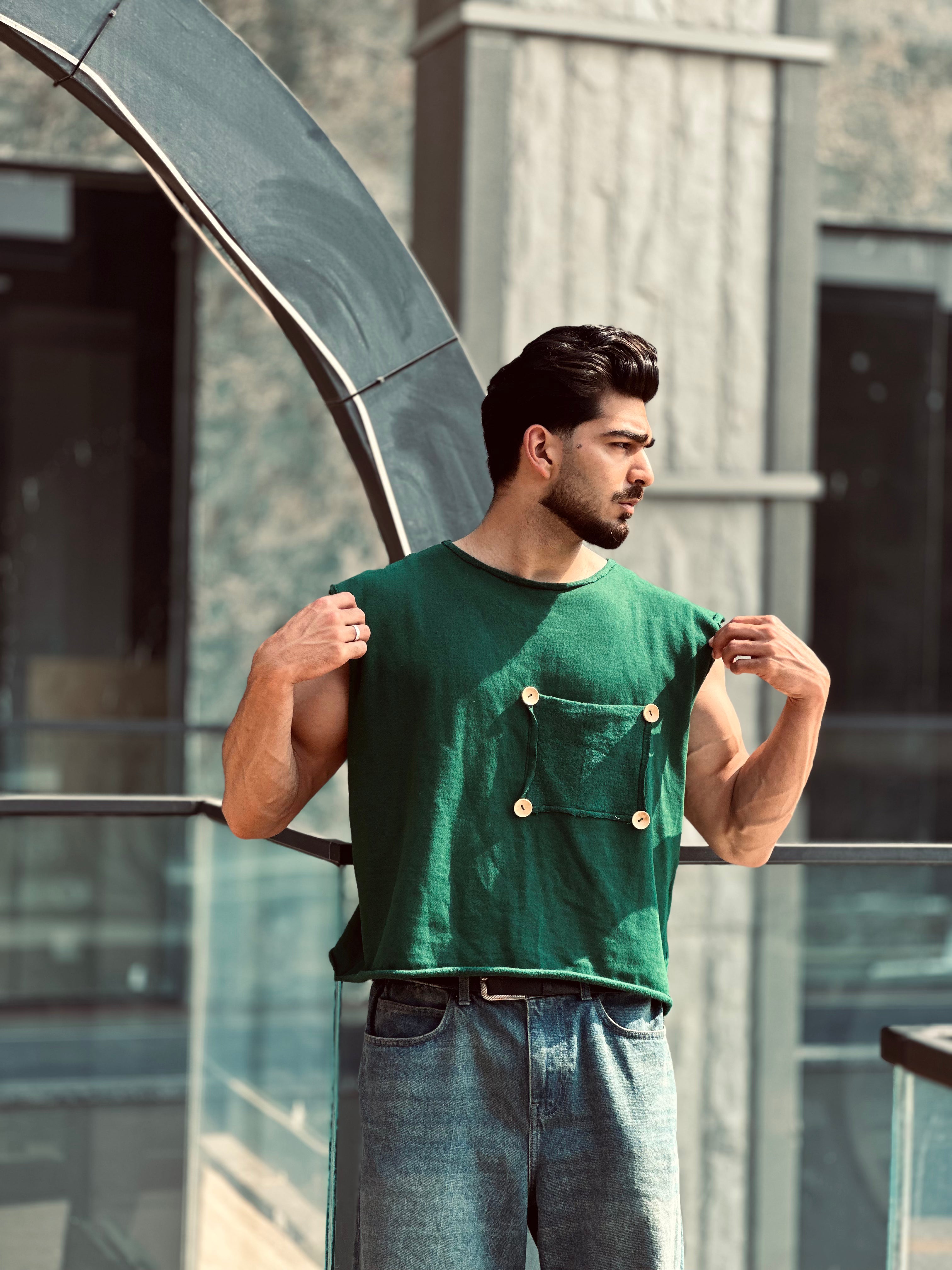 The "Essentialist" Raw-Edge Tank - Pista Green