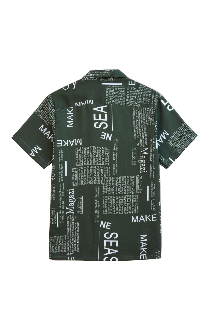 This struggle ends with the AKHBAAR PRINT, a shirt designed to make a statement while keeping you comfortable all day long. Its striking all-over newspaper-inspired typography in crisp white set against a deep forest green backdrop instantly grabs attention. Crafted from premium, soft, and breathable fabric, it ensures you stay cool and comfortable no matter where your day takes you.